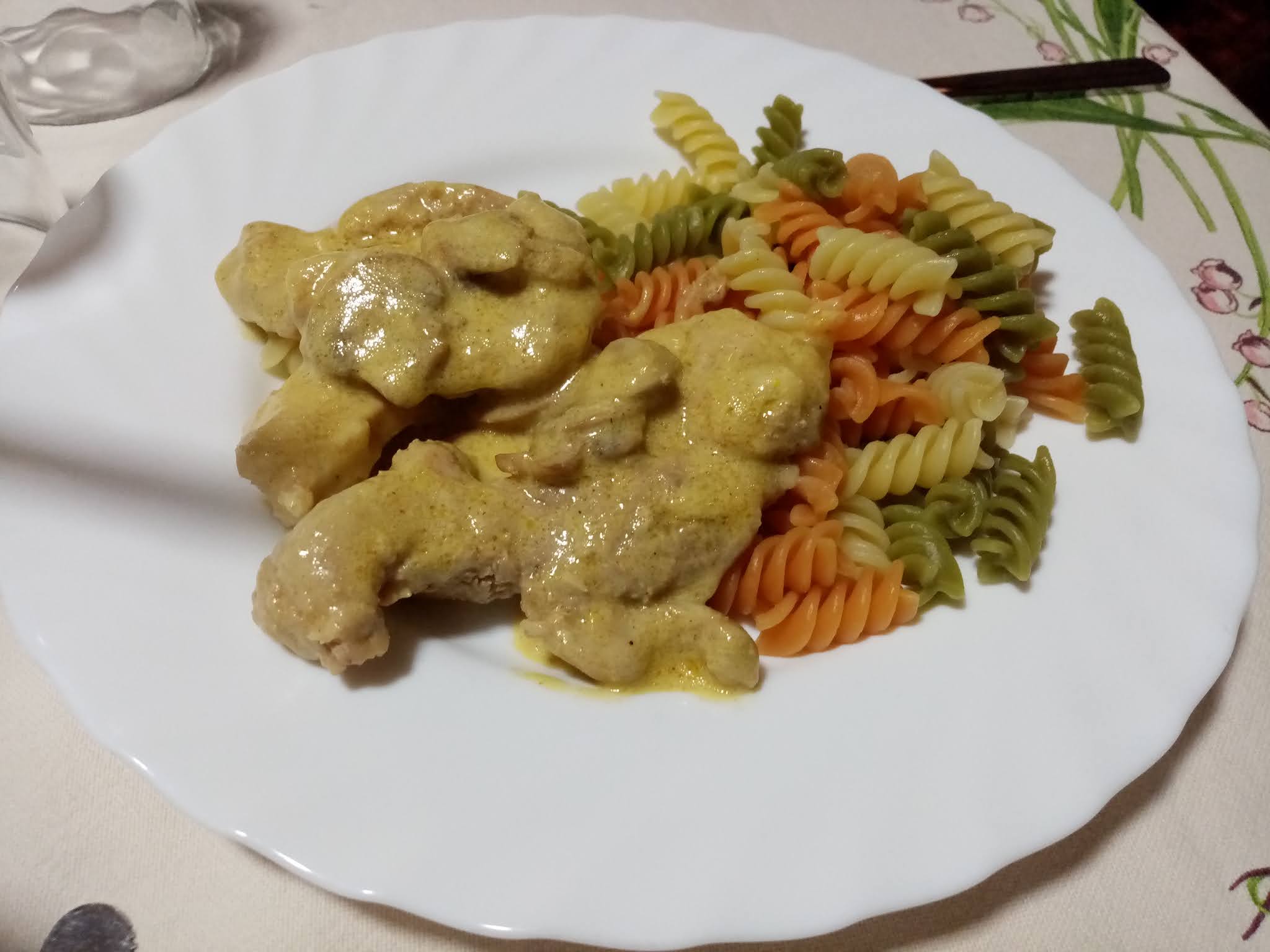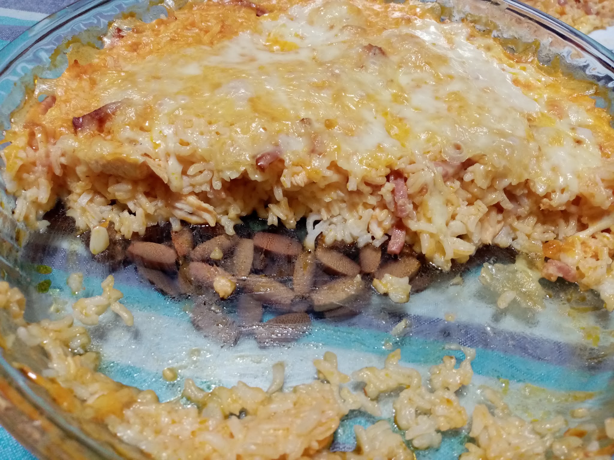 Desta vez saíu uma massa gratinada com frango e milho.