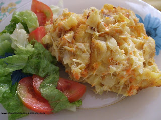 - cerca de 450g de bacalhau ( já desfiado - aproveito para tirar do congelador as cabeças e rabos do bacalhau)