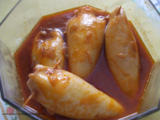 - Lavam-se e arranjam-se bem as lulas. Retiram-se as "abas" e os tentáculos e reserva-se.
