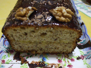 - Cobre-se o bolo com o chocolate e decora-se a gosto. Eu usei nozes.
