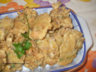 Desde que vi uma receita de pataniscas de polvo no panfleto do continente, fiquei com ela na ideia. Não a fiz como lá está. Fiz a que costumo fazer de pataniscas de bacalhau ( que por acaso é da SARA) e adicionei o polvo em vez do bacalhau.