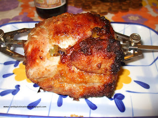 - Espeta-se o lombo no espeto e liga-se o grill rotativo. Assa cerca de 1,4om.