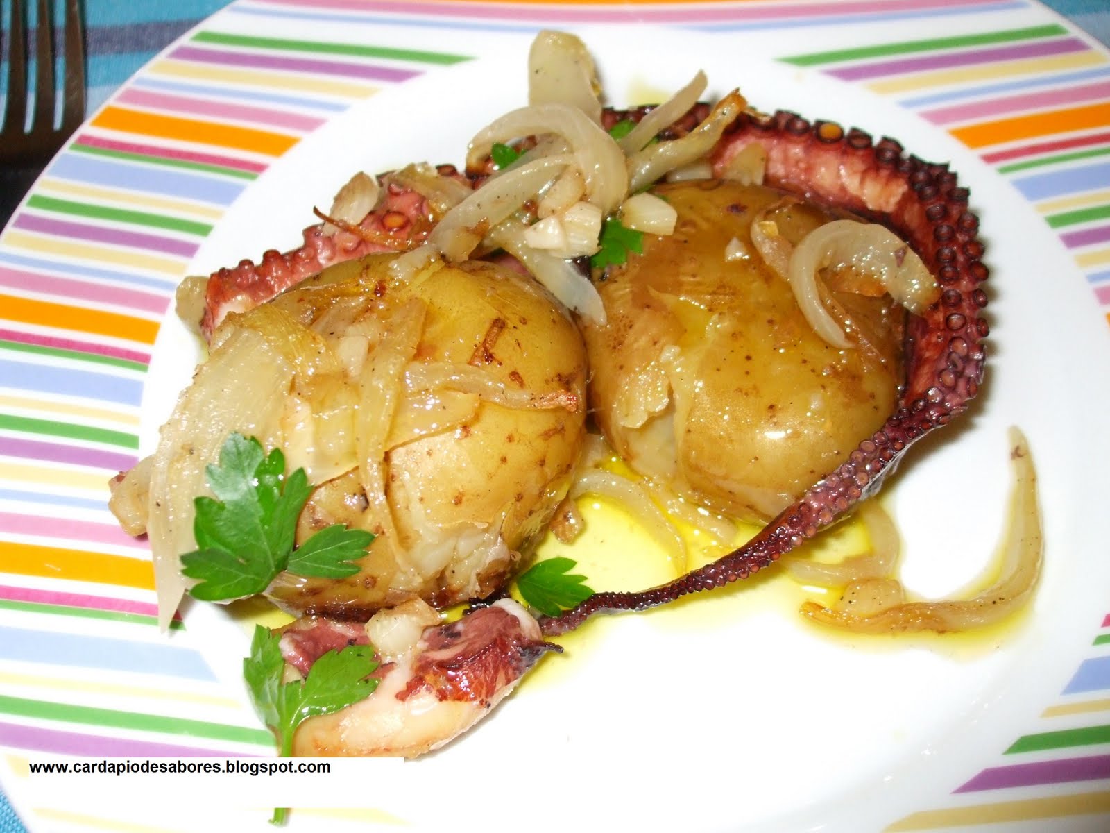 Polvo é um dos prato preferidos ca de casa,eu cozo na pamela de pressão mas deito um pouco de wisky,fica optimo,o teu prato ficou uma delicia,abriu me o apetite para o almoço,bjs