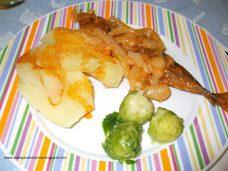 - Arranja-se e amanha-se o peixe. Tempera-se com sal e alho em pó e deixa-se repousar.
