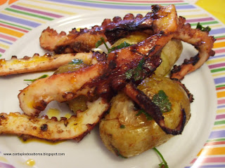 É um prato delicioso, para os amantes do polvo!! E não só! Baptizei de polvo dourado, porque no grelhador doura um pouco. O polvo fica super tenro e super saboroso, mesmo sendo cozido sem sal. Nunca mais cozi com água.