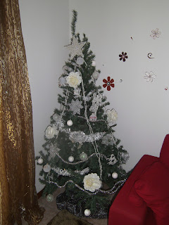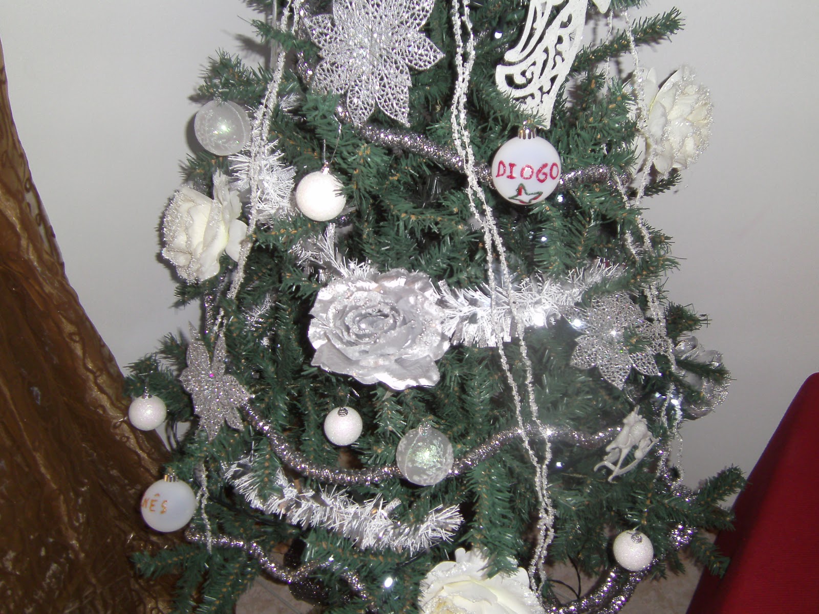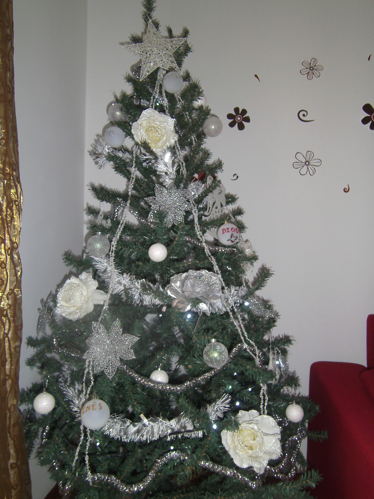 Aqui está a arvore de natal deste ano. Completamente diferente do ano passado, que era em tons de vermelho e branco, com bonequinhos.