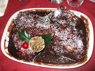 Por fim, polvilhei com côco ralado e decorei com uma pinha e folhas de azevinho.